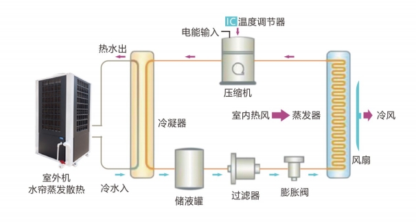水帘降温是一种效率很高的降温其通过蒸发水分,可在短时间内带走大量热量。根据压缩机压焓图,冷凝温度每降低1℃,压缩机能效提高3%左石。蒸发式省电空调冷凝温度可低至环境湿球温度省电空调与当今广泛应用的风冷空调系统相比,可省电35-50%,与水冷空调系统充相比,能够省电15-25.