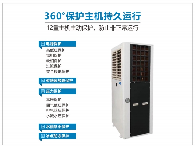 9、智能控制,采用全自动微电脑控制,可加装手机APP远程控制器控制设备开、关、制冷、送风、故障报警等功能,提高效率。