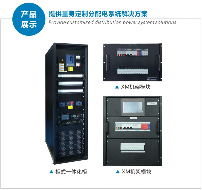 XM机架配电模块设有指示灯及人机界面或智能仪表等,能检测并显示总输入电压、电流、频率,功率及各输出分路的开关状态等电参数,面板设置告警蜂鸣指示灯,并通过数字通讯上传至后台动环监控系统,达到对整个配电系统的实时监控与运行质量的有效管理,